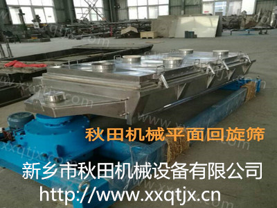 物料由進(jìn)料口緩沖勻流后進(jìn)入 第一層篩面除去大顆粒,其余的物料穿過(guò)第一層篩面后,進(jìn)入第二篩面篩去不合格小顆粒或粉末,合格成品經(jīng)篩面從出料口排出